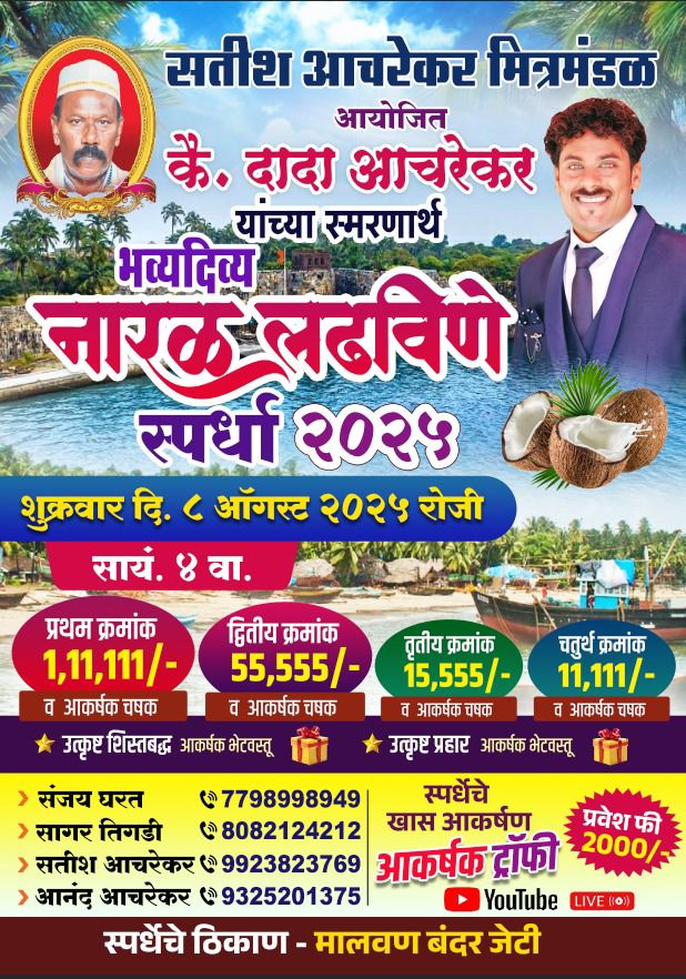 सतीश आचरेकर मित्रमंडळाच्या वतीने शुक्रवारी मालवण बंदर जेटी येथे भव्य दिव्य नारळ लढवणे स्पर्धा