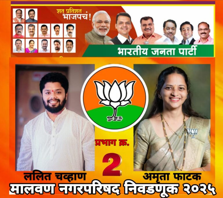 प्रभाग क्र. ९ ब च्या उमेदवार सौ. अन्वेशा अजित आचरेकर यांना विजयाचा विश्वास ; दांडी प्रभाग आदर्शवत बनवणार मालवण : मालवण नगर परिषद निवडणुकीत भारतीय जनता पार्टीने सौ. अन्वेशा अजित आचरेकर यांना प्रभाग क्र. ९ ब या जागेवरून निवडणूक रिंगणात…