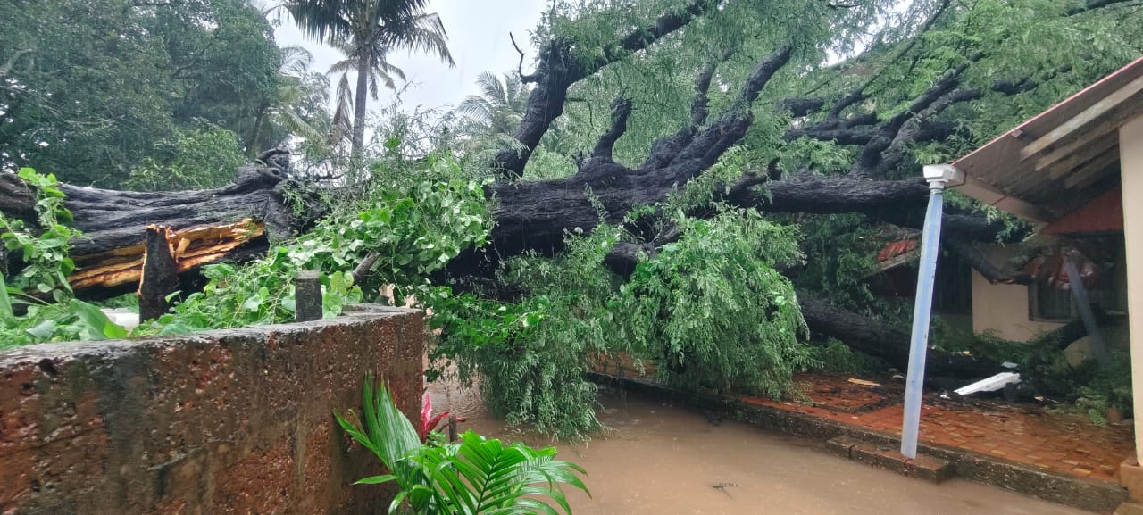 मालवण बांगीवाडा परिसरात असलेल्या माजी सैनिक वसतीगृहावर बाजूच्या जागेत असलेले चिंचेचे मोठे झाड आज सकाळी साडे अकरा वाजण्याच्या सुमारास कोसळले. यामध्ये छप्पराचे व दोन खोल्यांचे मोठ्या प्रमाणावर नुकसान झाले. यावेळी विश्रामगृहातील एका खोलीत कार्यरत असलेले विश्रामगृह अधीक्षक अमर रेवंडकर, कर्मचारी गिरीश वराडकर, गोविंद गोसावी यांना सुदैवाने कोणतीही दुखापत झाली नाही व ते सुखरूप खोलीच्या बाहेर आले.