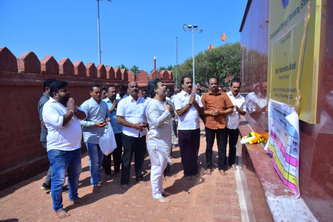 शिवसेना उमेदवार राजकोट किल्ला येथे छत्रपतींसमोर नतमस्तक