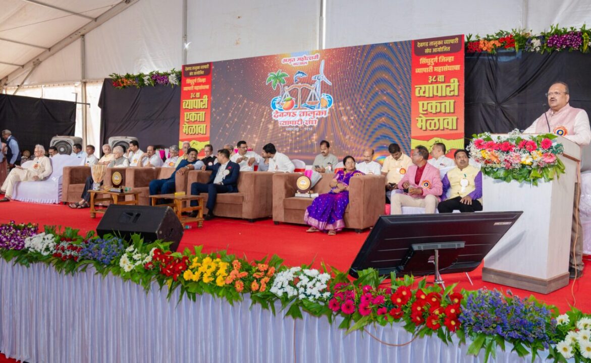देवगड तालुका व्यापारी संघांच्या वतीने सिंधुदुर्ग जिल्हा व्यापारी महासंघाचा ३८ वा वार्षिक व्यापारी एकता मेळावा व पुरस्कार वितरण सोहळा देवगडमधील शेठ म. ग. हायस्कूलच्या पटांगणावर संपन्न झाला. कार्यक्रमाचे उद्घाटन महाराष्ट्र चेंबर ऑफ कॉमर्सचे अध्यक्ष रविंद्र माणगावे यांच्या हस्ते झाले. या कार्यक्रमाला महाराष्ट्र चेंबर ऑफ कॉमर्सचे माजी अध्यक्ष व अॅप्लॉईड इनोव्हेशन अँड टेक्नॉलॉजी ग्रुपचे चेअरमन रामभाऊ भोगले, आय-४१ इन्व्हेस्टमेंट सर्व्हिसेसचे संस्थापक महेश चव्हाण, माजी आमदार अॅड. अजित गोगटे, जिल्हा व्यापारी संघाचे अध्यक्ष प्रसाद पारकर, कार्यवाह नितीन वाळके, उपाध्यक्ष संजय भोगटे, सागर शिरसाट, कोषाध्यक्ष अरविंद नेवाळकर, सहकार्यवाह राजू जठार, देवगड तालुका व्यापारी संघाचे अध्यक्ष शैलेश कदम, महिला तालुकाध्यक्षा प्रियांका साळसकर, स्वागताध्यक्ष सुरेंद्र चव्हाण, सचिव संजय मेस्त्री, देवगड तालुका व्यापारी पर्यटन समितीचे अध्यक्ष प्रमोद नलावडे तसेच इतर तालुक्यातील व्यापारी संघांचे पदाधिकारी उपस्थित होते.