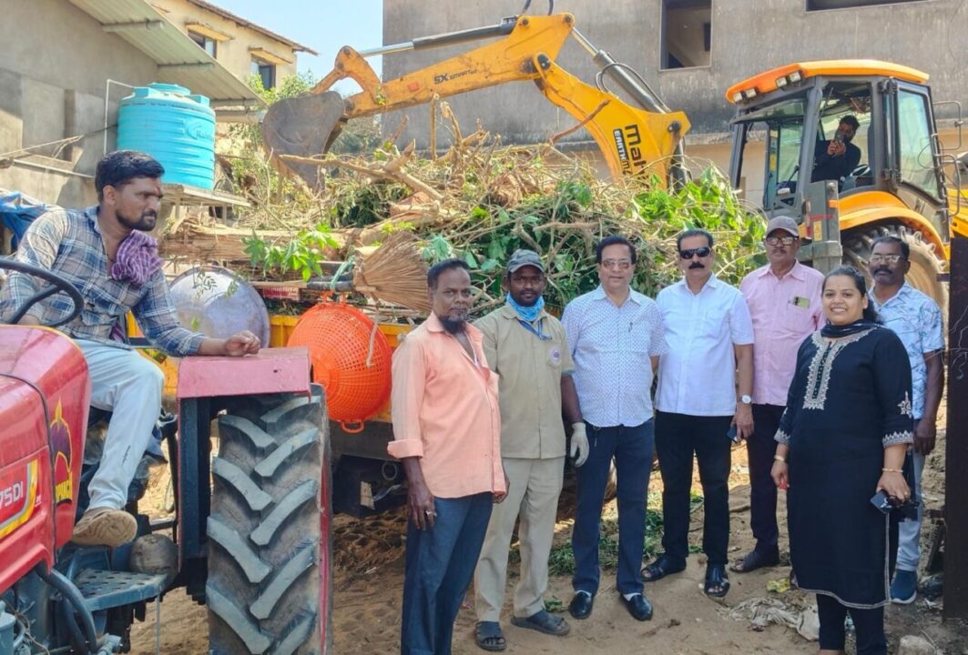 याठिकाणी वाढलेली झाडी झुडपे व अडगळ जेसीबी मशीन व पालिका कर्मचारी यांच्या मदतीने हटवण्यात आली. मात्र इमारत परिसरात अस्वच्छता व घाणीचे साम्राज्य आहे. हा परिसर स्वच्छ करत असताना पालिकेचे स्वच्छता कर्मचारी इथे अडकून पडल्यास शहरातील इतर भागातील कचरा उचल वर परिणाम होऊ नये या दृष्टीने स्वच्छता सभापती पूनम चव्हाण व उपनगराध्यक्ष दीपक पाटकर यांनी स्वखर्चाने काही कामगारांना बोलावून दोन दिवसात संपूर्ण परिसर स्वच्छ करण्याबाबत सांगितले आहे. सोमवार पर्यंत हा संपूर्ण परिसर स्वच्छ केला जाणार आहे.