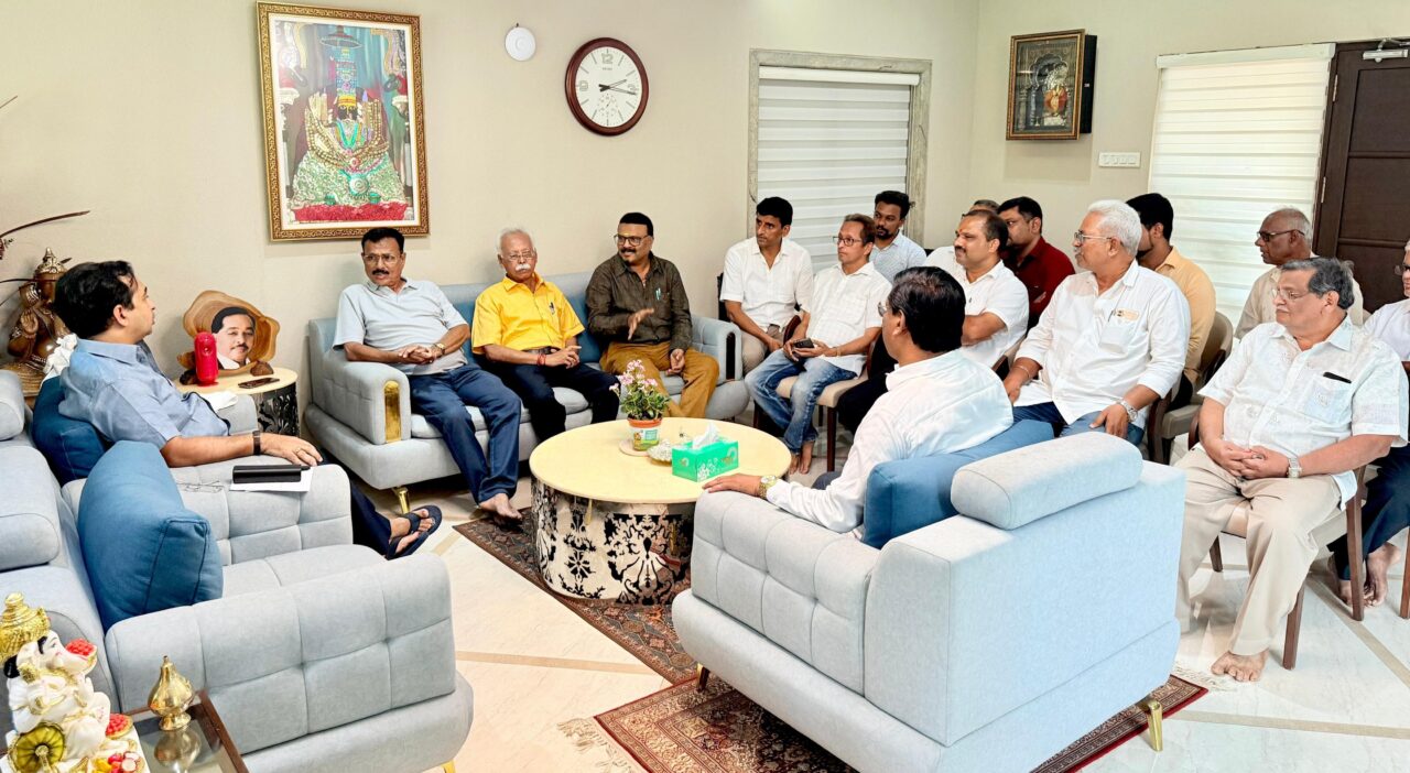 सिंधुदुर्ग जिल्हा व्यापारी महासंघ अध्यक्ष संजय सावंत यांच्यासह पदाधिकारी यांनी शनिवारी पालकमंत्री नाम. नितेश राणे यांची कणकवली येथे ओम गणेश निवासस्थानी भेट घेतली. व्यापाऱ्यांच्या विविध प्रश्नाबाबत पदाधिकाऱ्यांनी नामदार नितेश राणे यांच्याशी प्रदिर्घ चर्चा केली. ओसरगाव येथील टोलमधून सिंधुदुर्ग पासिंगच्या गाड्यांना वगळण्यात येणार असे पालकमंत्री नितेश राणे यांनी जाहीर केले. त्याचबरोबर महासंघाच्या कार्यालयासाठी भुखंड देण्याचेही त्यांनी आश्वासित केले. कचरामुक्त जिल्हा करण्यासाठी जिल्हा नियोजन मधून सर्व बाजारपेठांसाठी कचरा कुंड्या देण्यात येणार आहेत.