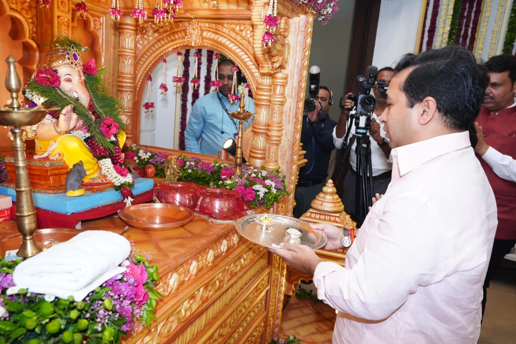 मुंबई : राज्याचे मत्स्य व बंदरे विकास मंत्री तथा सिंधुदुर्ग जिल्ह्याचे पालकमंत्री नितेश राणे यांनी मुख्यमंत्री देवेंद्र फडणवीस यांच्या वर्षा निवासस्थानी सपत्नीक श्री गणपती बाप्पांचे दर्शन घेतले. यावेळी पत्नी ऋतुजा राणे, मुलगा कु.निमिष यांच्या गणपती त्यांनी गणपती बाप्पाची आरती केली. गणरायाचे दर्शन घेताना मंत्री नितेश राणे यांनी महाराष्ट्राला बळीराजाच्या मेहनतीचे योग्य फळ मिळो, माझ्या मच्छीमार बांधवांचे जीवन अधिक सुखी-समृद्ध होवो तसेच राज्यातील सर्व नागरिकांचे आरोग्य व आयुष्य मंगलमय होवो, अशी बाप्पा चरणी प्रार्थना केली.