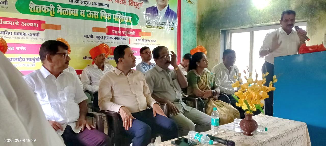 अथर्व इंटरट्रेड प्रा. लि., कोल्हापुर लिज्ड युनिट, दौलत शेतकरी सह.साखर कारखाना लि., हलकर्णी आणि सिंधुदुर्ग जिल्हा मध्यवर्ती सहकारी बँक लि., सिंधुदुर्ग यांच्या संयुक्त विद्यमाने शेतकरी मेळावा व ऊस पिक परिसंवाद सोमवारी आंबोली ग्रामपंचायत हॉल येथे आयोजित करण्यात आला होता. त्यावेळी ते बोलत होते. या कार्यक्रमाला प्रमुख वक्ते म्हणून वसंतदादा शुगर इंन्स्टीट्युट पुणेचे माजी शास्त्रज्ञ आबासाहेब साळुंखे यांनी ऊस शेती व ऊस शेती तंत्रज्ञानाबद्दल मार्गदर्शन केले. यावेळी जिल्हा बँकेचे संचालक सर्वश्री गजानन गावडे, रवींद्र मडगांवकर, जिल्हा बँकेचे मुख्य कार्यकारी अधिकारी प्रमोद गावडे, अथर्व-दौलत साखर कारखान्याचे मुख्य कार्यकारी अधिकारी विजय मराठे, संचालक विजय पाटील तसेच आंबोली, चौकुळ पंचक्रोशीतील नागरिक मोठ्या संख्येने उपस्थित होते.